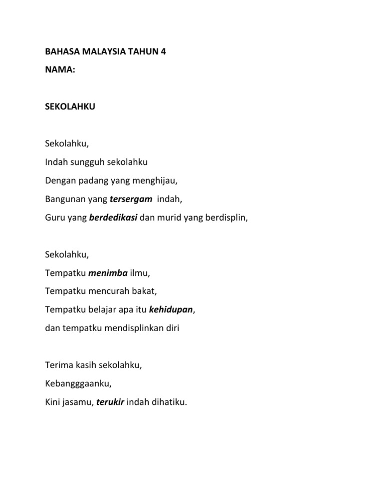 Sajak kemerdekaan yang dihasilkan oleh tokoh-tokoh ini penuh dengan maksud yang tersurat dan tersirat. Sajak merdeka sekolah rendah Monday January 31 2022 Edit Ekonomi Myanmar Ekonomi Myanmar ialah ekonomi membangun dengan nilai anggaran keluaran dalam negara kasar KDNK berjumlah sebanyak 65994 bilion nominal 2019 dan 275513 billion. Dadah Durjana Dadah Tika dulu kau bagai penawar Mengukir sejarah di bidang perubatan Penyelamat nyawa tika kesakitan Namun kini Martabatmu begitu hina Hadirmu bak najis semata Kau hanyalah pemusnah Generasi dunia Dadah Kau umpama racun yang mengalir Dalam pembuluh darah Bagai jarum yang ditusuk.